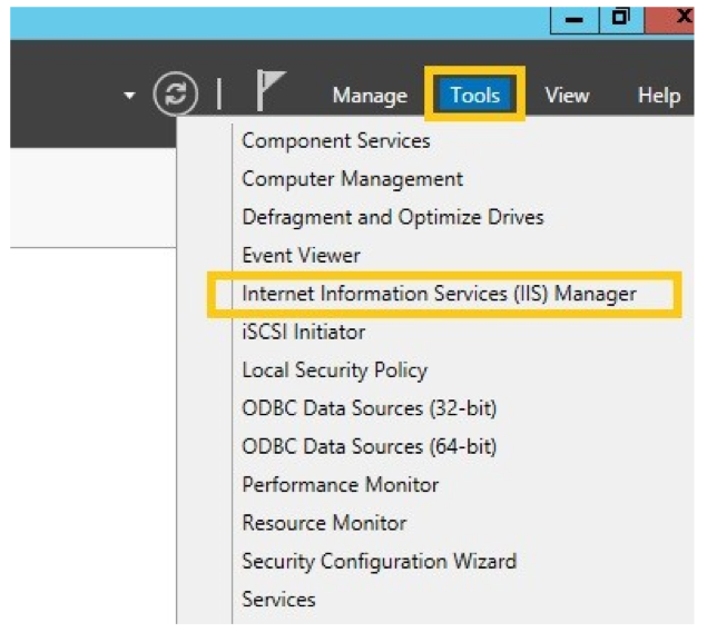 2, Chọn mụcTools > Internet Information Services (IIS) Manager