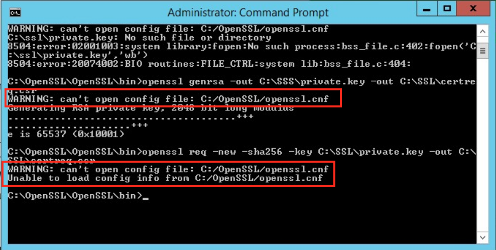 Trong trường hợp chạy 1 số câu lệnh bị báo lỗi không tìm thấy file cấu hình openssl.cnf như sau: